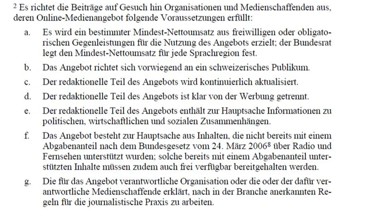 Das neue «Bundesgesetz über die Förderung von Online-Medien», kurz BFOM, macht elf Vorgaben, welche erfüllt sein müssen, um an die staatlichen Honigtöpfe zu gelangen.