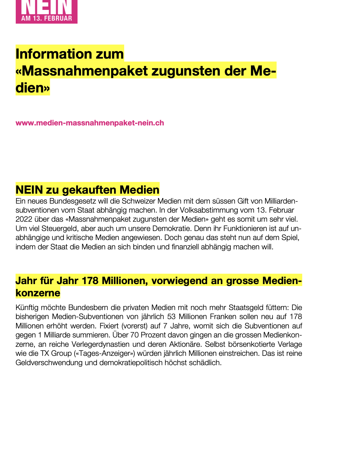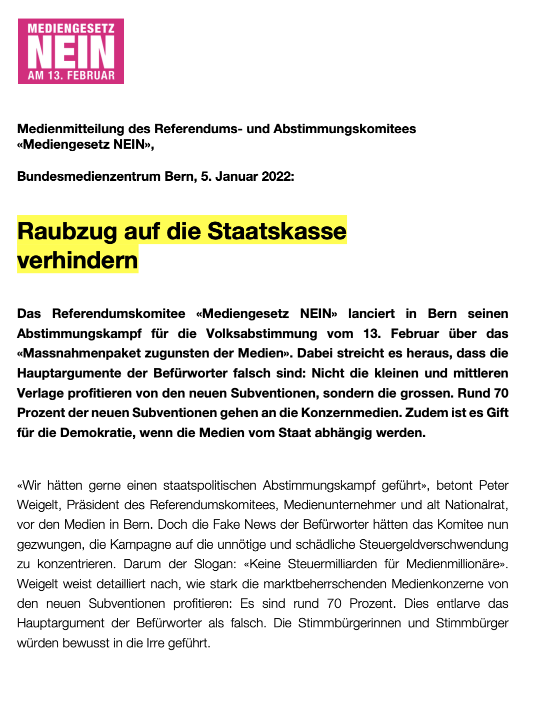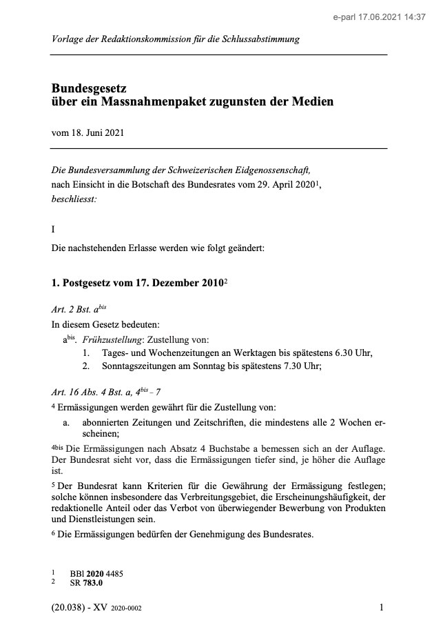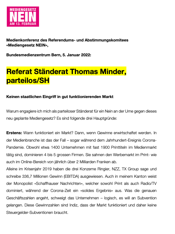 Der aufreibende Kampf gegen das schädliche Mediengesetz liegt hinter uns. Es ist unserem kleinen, sechsköpfigen Team gelungen, das «Massnahmenpaket zugunsten der Medien» mit einer komfortablen Mehrheit von 55 Prozent zu versenken.